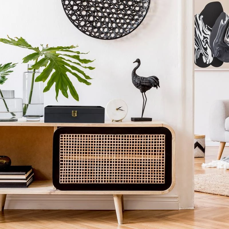 - Matériau : Bois manufacturé, Verre, Textile
