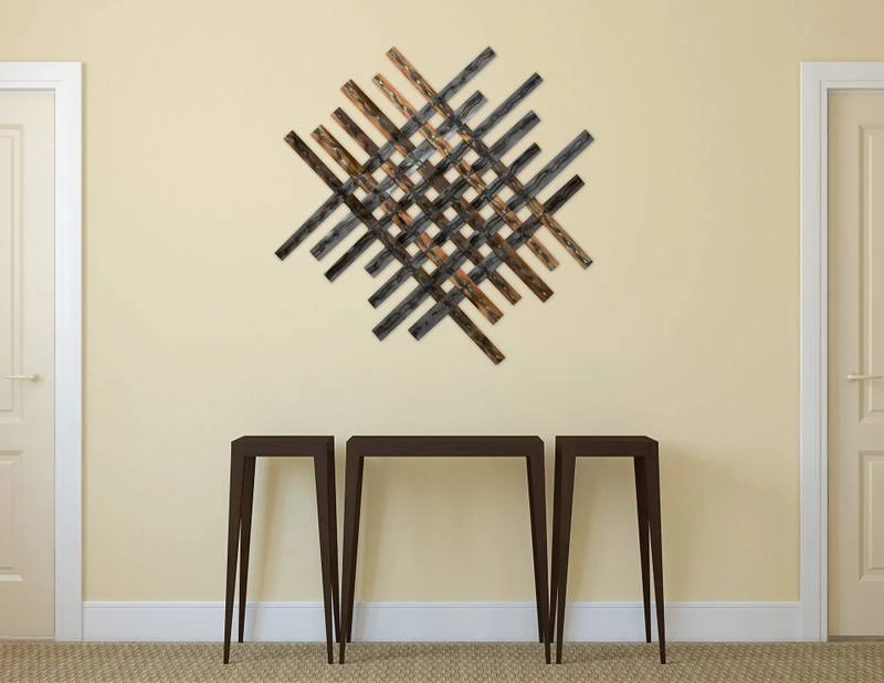 - Autres caractéristiques : Métal | œuvre d’art faite à la main | avec œillets d’accrochage pour un montage en intérieur | 100x100x3cm (L/H/P) | poids : env. 3,6kg | avec certificat d’authenticité